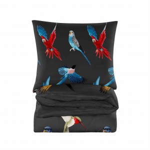 Pościel 200x200 czarna w papugi