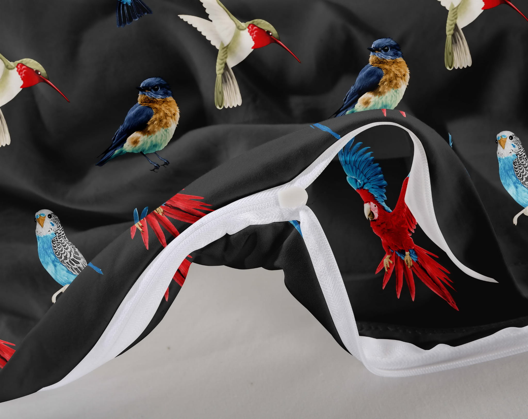 Głęboka czerń, żywe kolory: Dzięki zaawansowanej technologii druku, kontrastowy wzór papug pozostaje ostry i nasycony, a czerń nie blaknie.