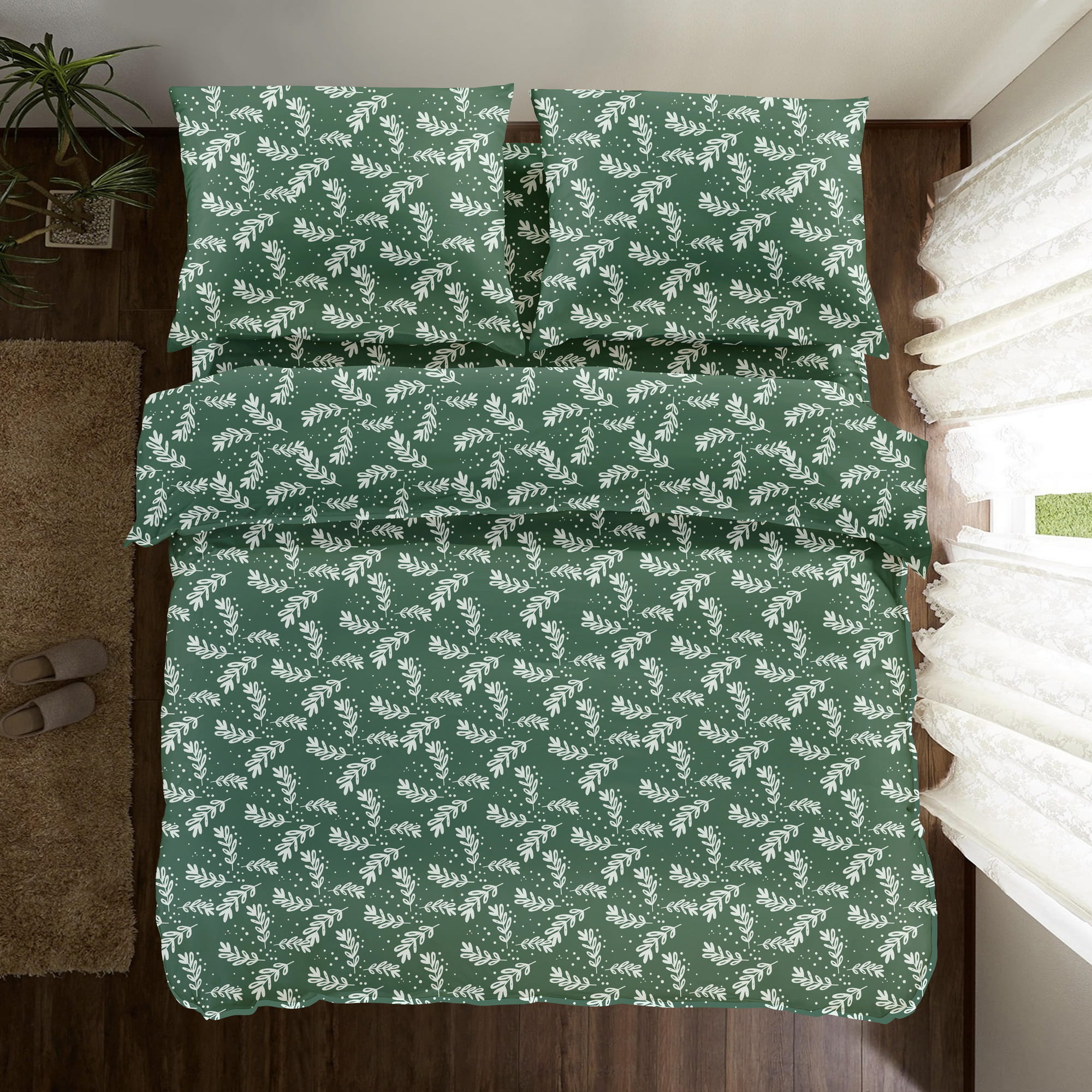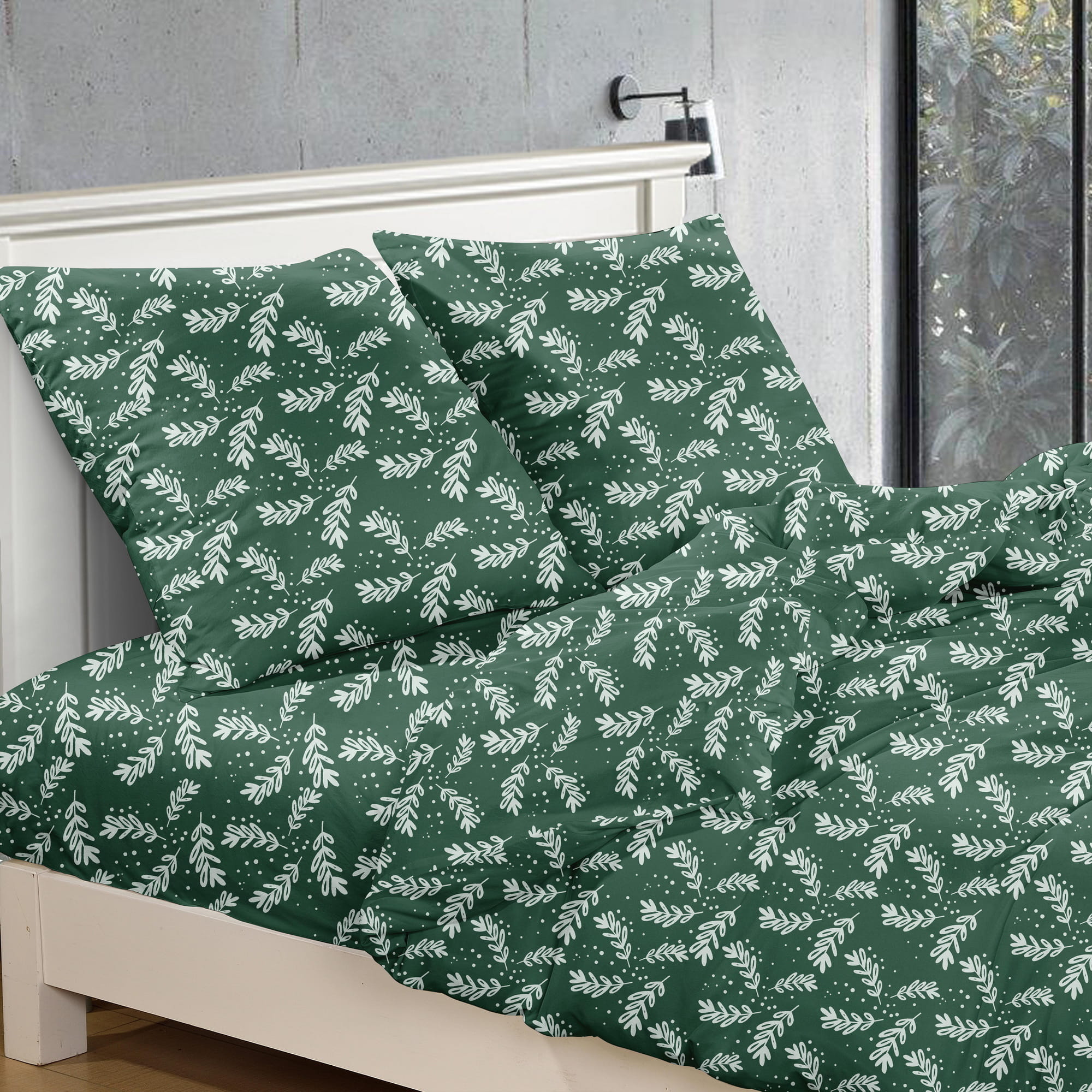 Pościel 155x220 butelkowa zieleń w gałązki sosny