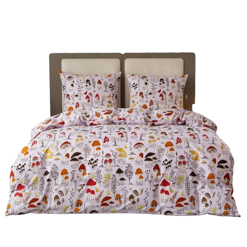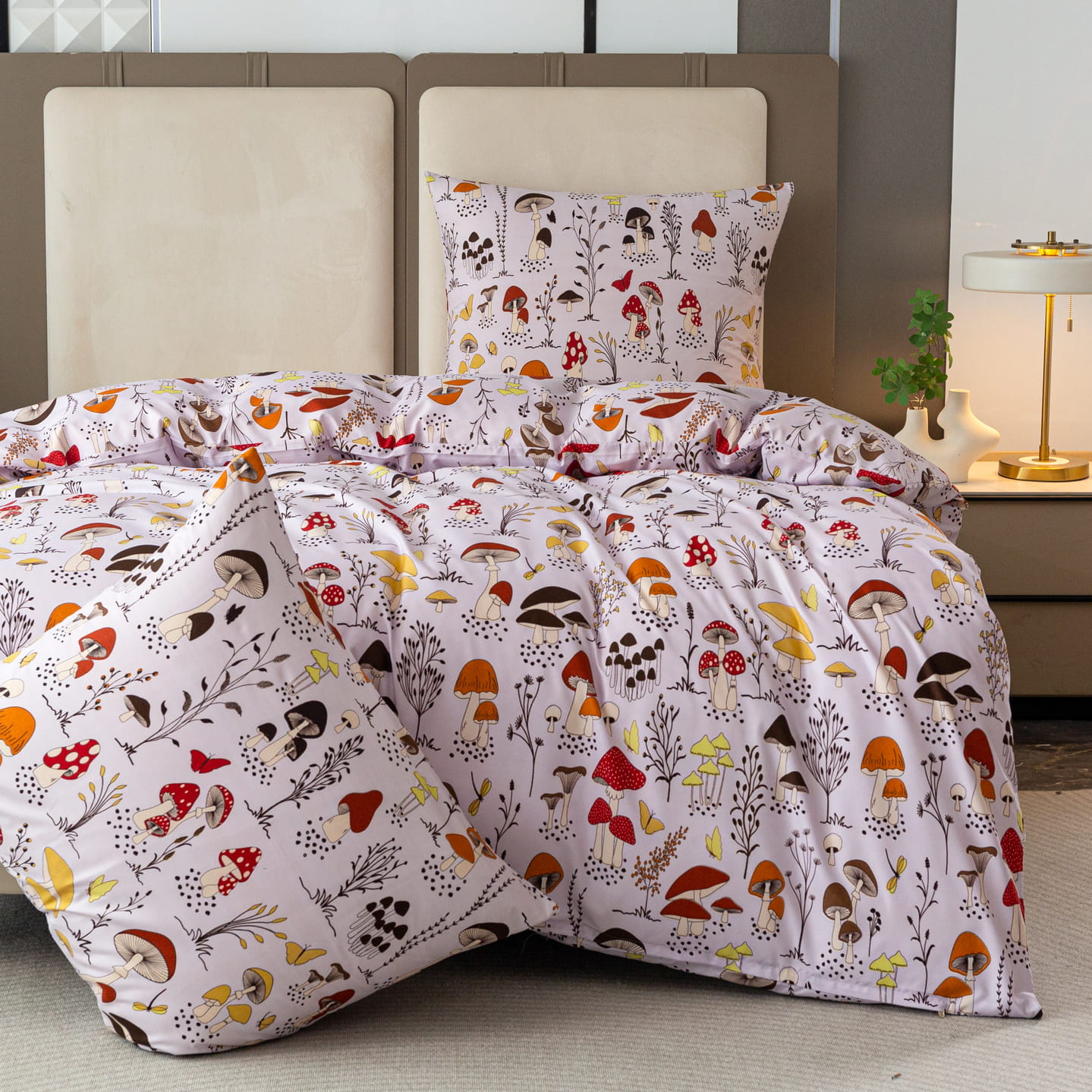 Komplet Pościeli Dwuosobowej Grzybki 160x200 z 2 Poszewkami 70x80