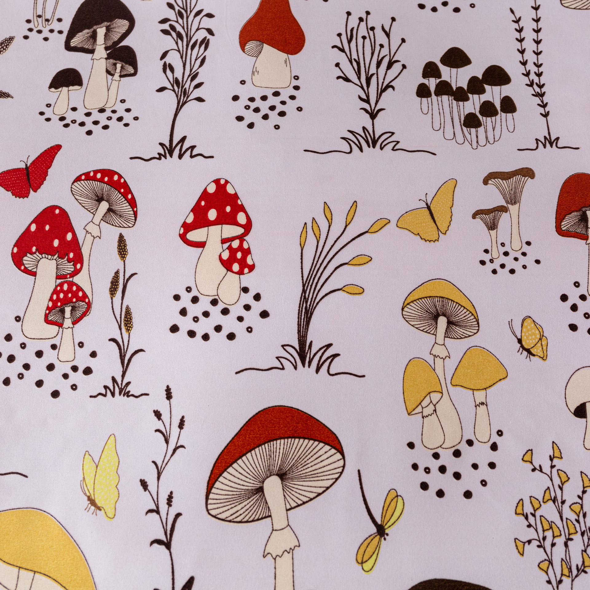 Trwałość naturalnych barw: Nowoczesna technologia nadruku sprawia, że motyw grzybów oraz jasnoszare tło zachowują swoją świeżość i nie blakną nawet po wielu wizytach w pralce.