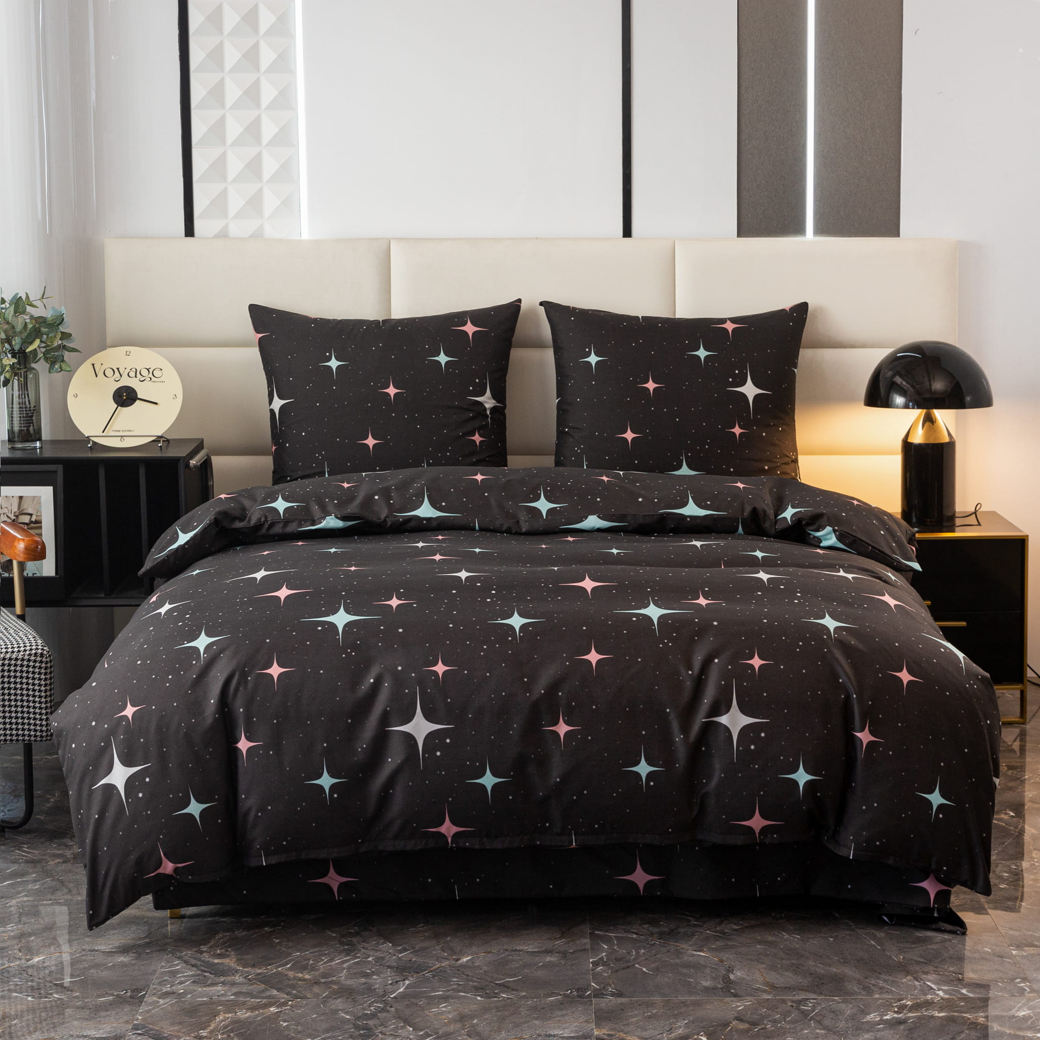 Komplet Pościeli Dwuosobowej Gwiazdy 200x200 z 2 Poszewkami 70X80