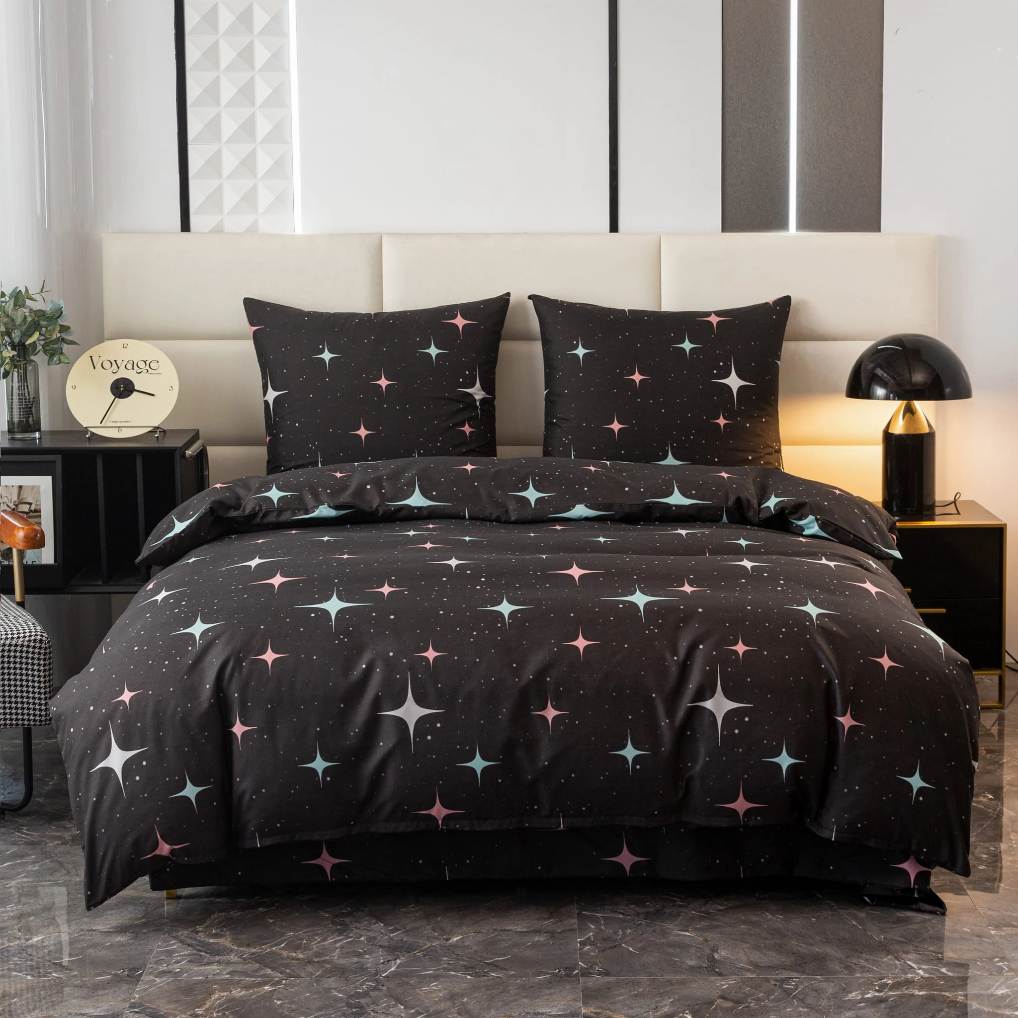 Komplet Pościeli Dwuosobowej Gwiazdy 220x200 z 2 Poszewkami 70X80