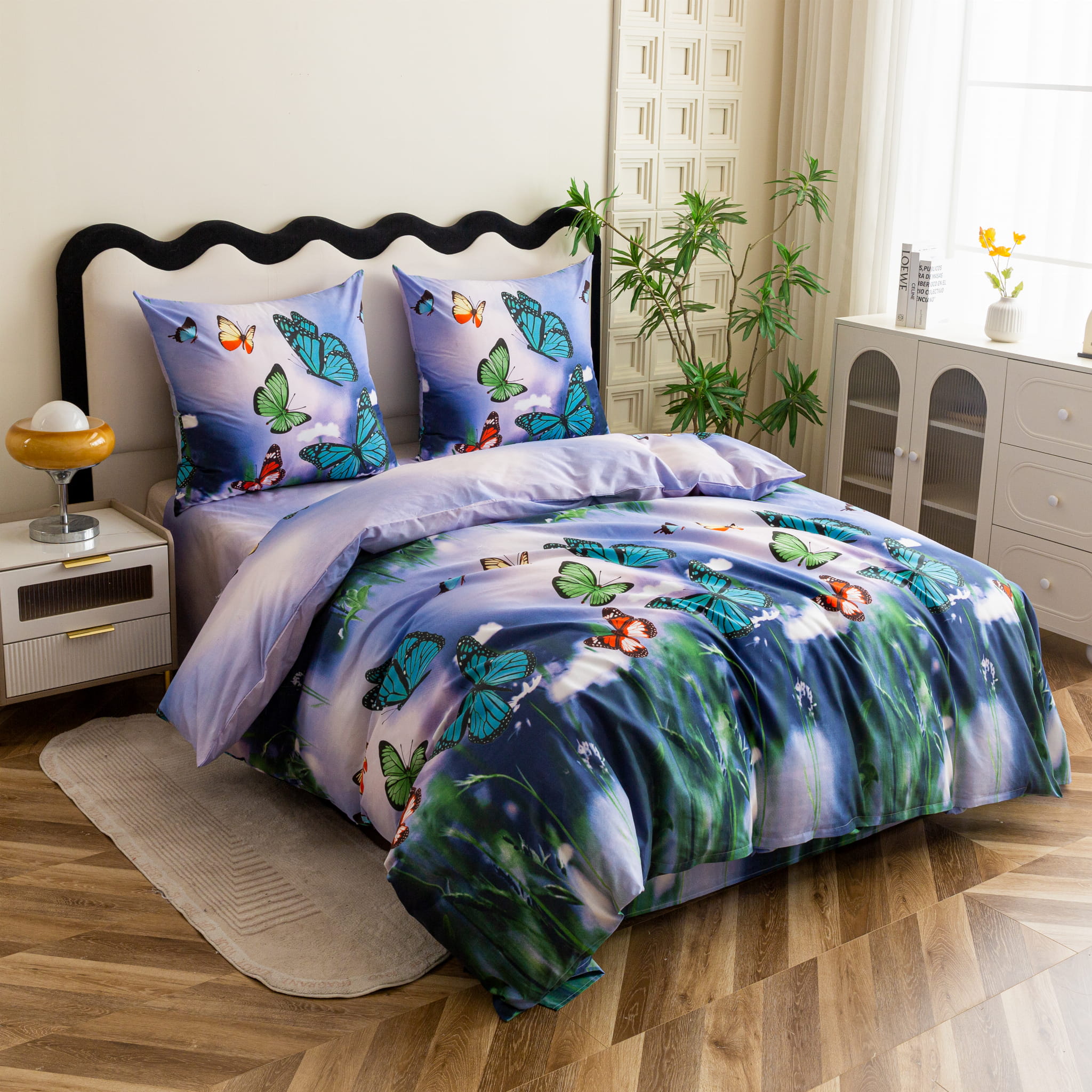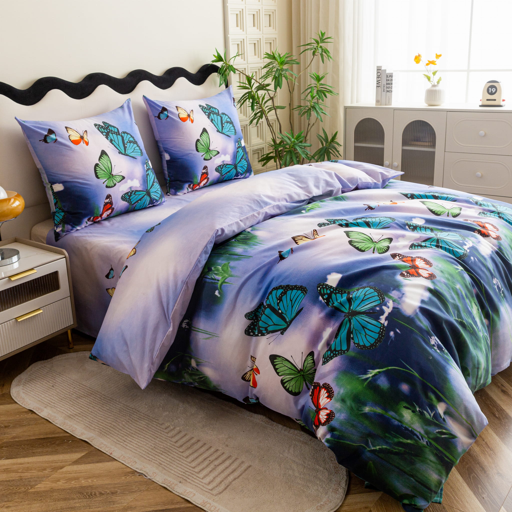 Materiał 100% niefarbujący: Zaawansowana technologia druku gwarantuje, że intensywne kolory skrzydeł motyli pozostają nasycone, a tło nieskazitelnie czyste nawet po wielu praniach