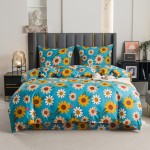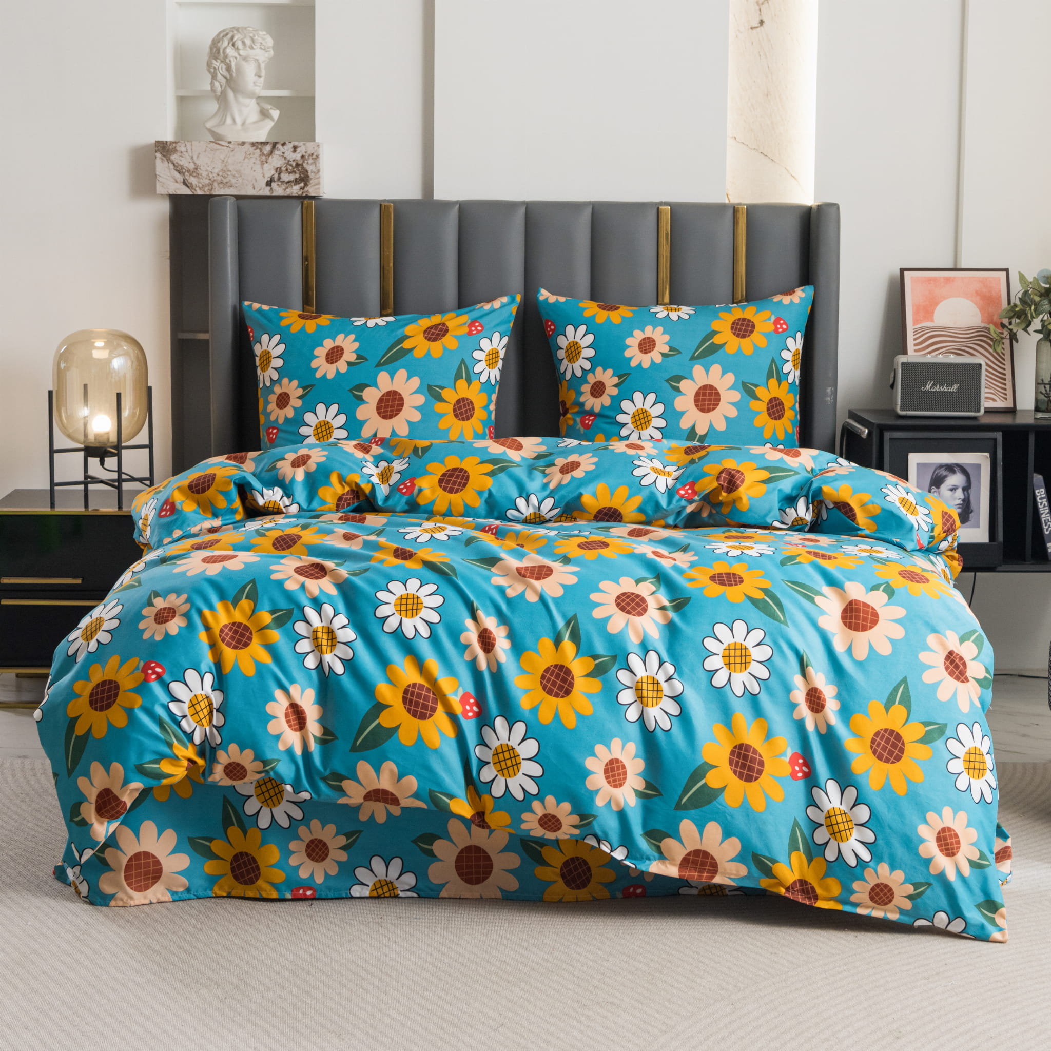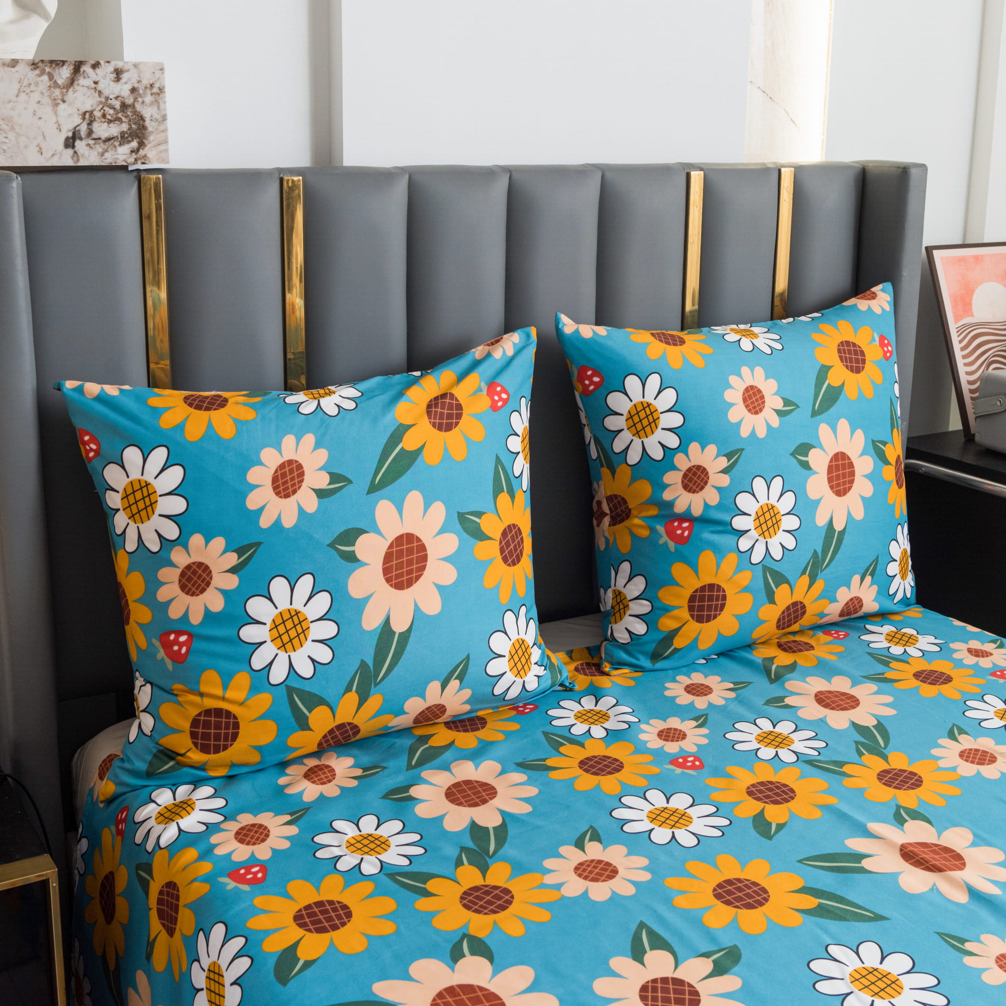 Komplet Pościeli Dwuosobowej Słoneczniki 160x200 z 2 Poszewkami 70x80