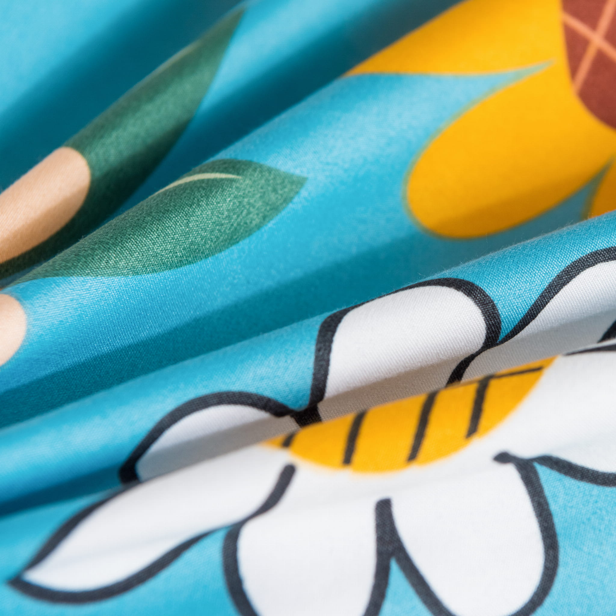 Trwałość intensywnych barw: Soczysta żółć płatków i głęboka zieleń liści zachowują swój blask i intensywność nawet po wielu praniach. Kolory nie blakną, ciesząc oczy przez długi czas.