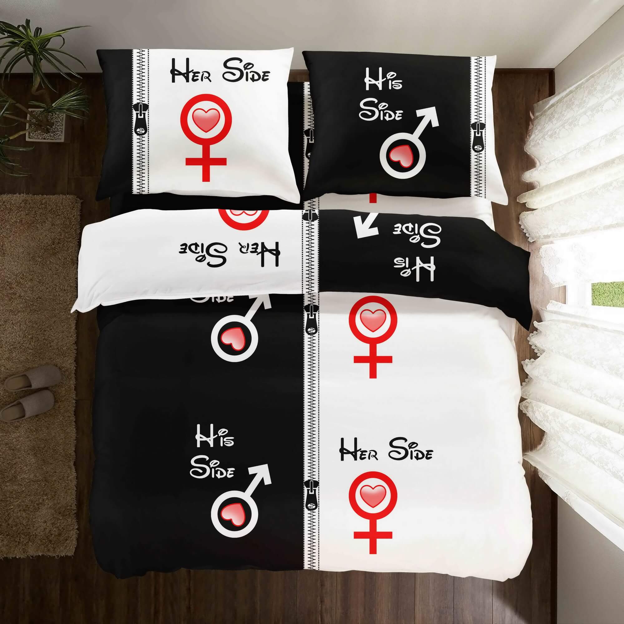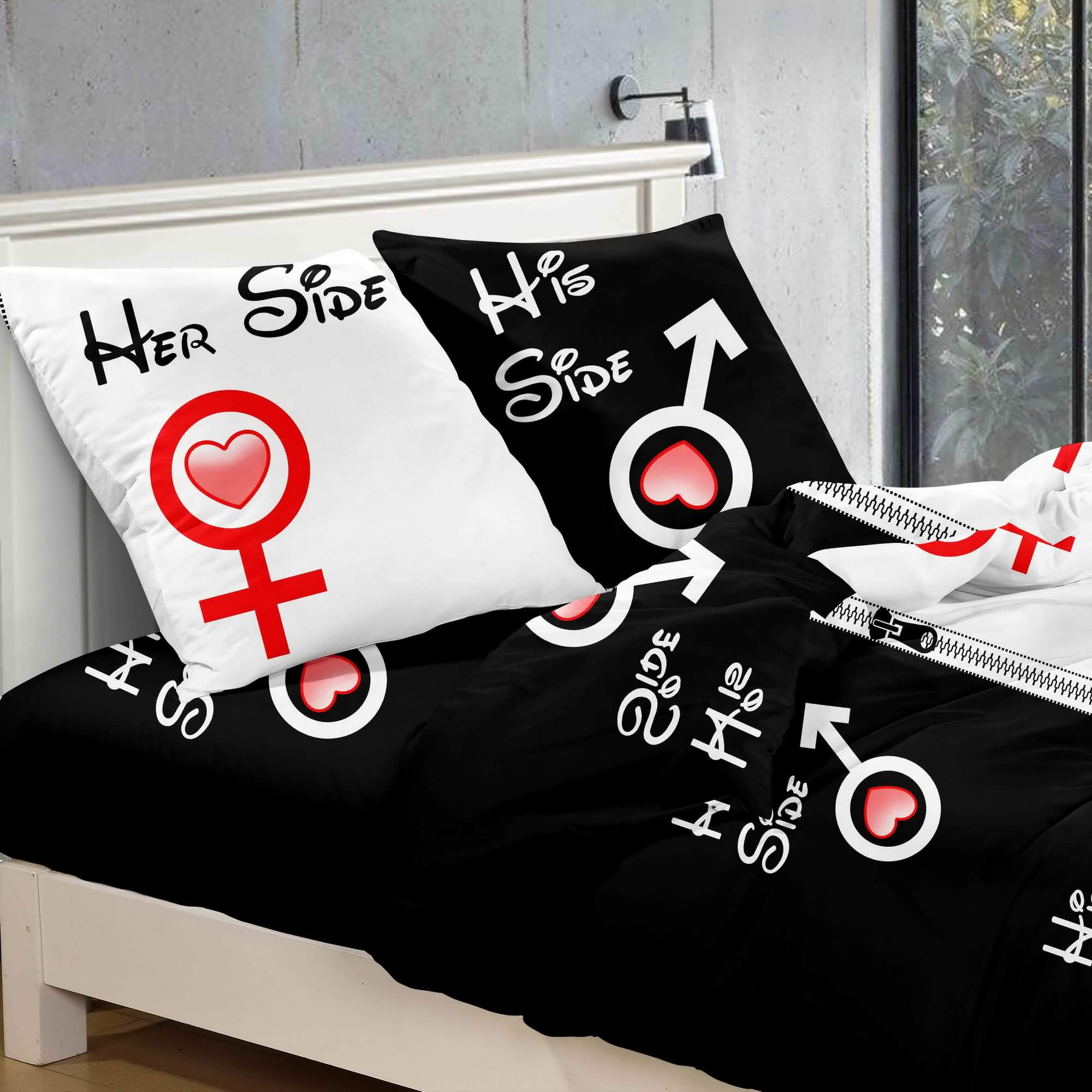 Szukasz pościeli, która w jasny i stylowy sposób podkreśli charakter Waszej wspólnej sypialni? Nasz komplet Side Story On/On to propozycja, która łączy minimalistyczną formę z czytelnym przekazem. Rozmiar 200x200 w zestawieniu z dwiema dopasowanymi poszewkami tworzy spójną całość, która optycznie porządkuje i rozjaśnia wnętrze. To doskonały wybór dla osób ceniących nowoczesny styl życia i estetykę typu „black & white”.